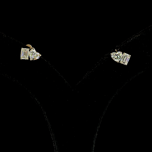 1.53ctw Lab Grown Heart and Emerald Cut Diamond Studs