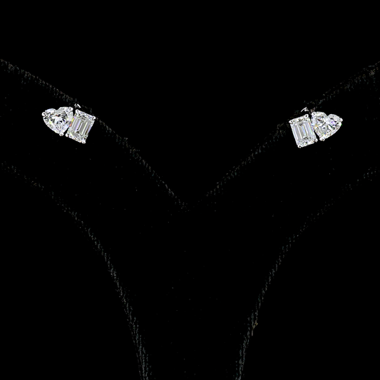 1.56ctw Lab Grown Heart and Emerald Cut Diamond Studs