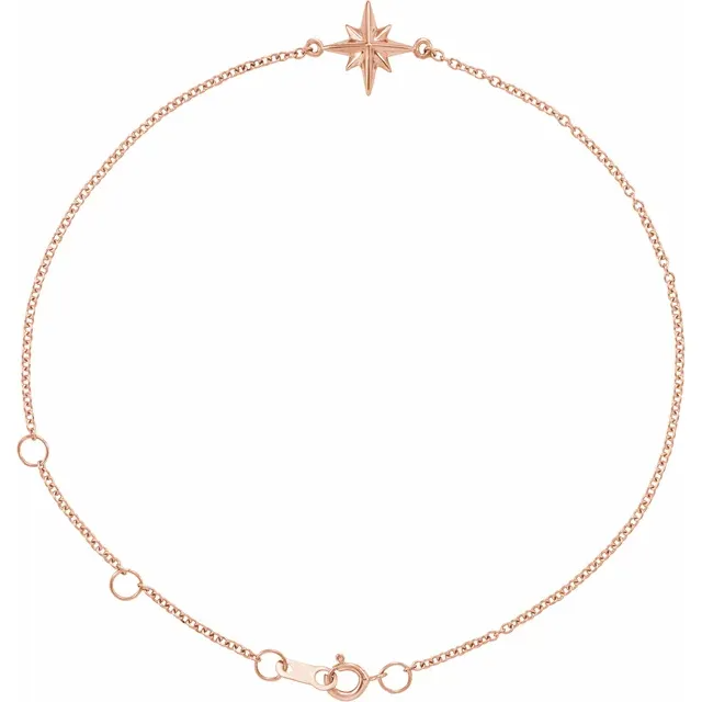 Adorn your wrist with celestial charm using our Star Bracelet, available in 14k yellow, white, or rose gold. This dainty piece features delicate star motifs, adding a touch of celestial elegance to your look. Choose your preferred gold hue for a personalized touch, making this bracelet a versatile and stylish accessory for everyday wear or special occasions.